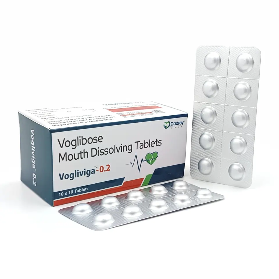 Vogliviga 0.2 Tablet contains Voglibose 0.2mg, an oral alpha-glucosidase inhibitor used in the management of type 2 diabetes mellitus. It works by delaying the digestion and absorption of carbohydrates in the intestine, thereby preventing a sudden spike in postprandial (after meal) blood sugar levels. Vogliviga 0.2 Tablet is especially useful in patients whose blood glucose levels are not adequately controlled by diet, exercise, or other oral antidiabetics. It complements other antidiabetic therapies by targeting post-meal glucose control without causing hypoglycemia when used alone.